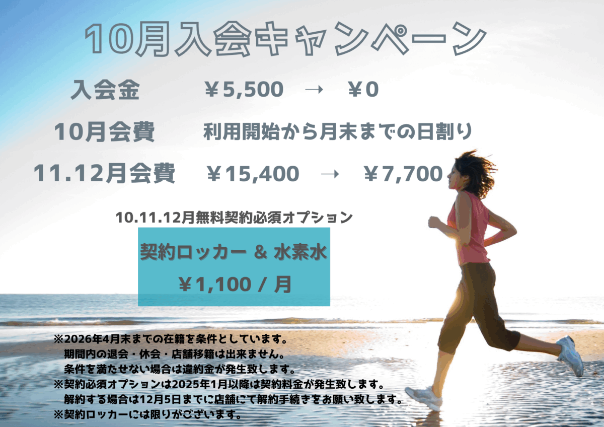 秋のスタートダッシュ!今なら入会金0円で自分史上最高のカラダへ!